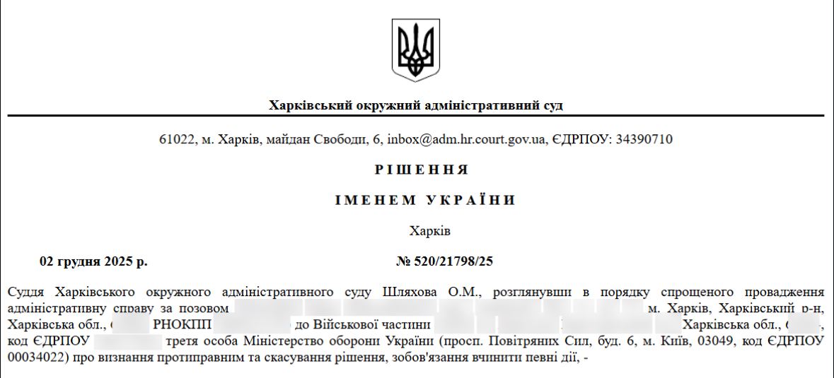 Таким чином, рішення про відмову було прийнято без дослідження ключових доказів, без правової оцінки обставин і з порушенням ст. 26 Закону України «Про військовий обов’язок і військову службу».