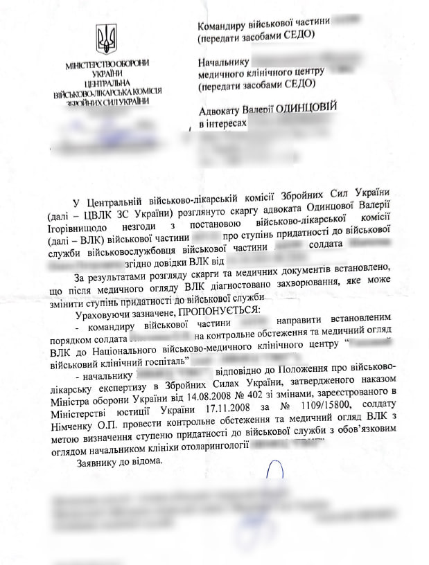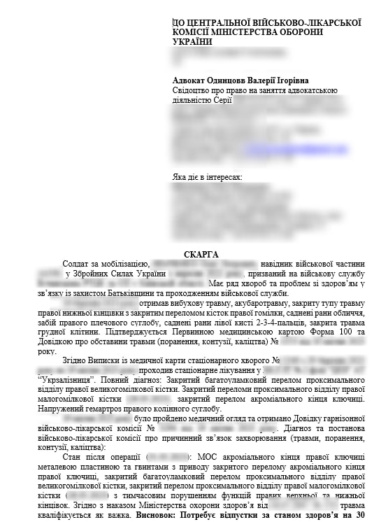 Центральна військово-лікарська комісія ЗСУ задовольнила нашу скаргу.