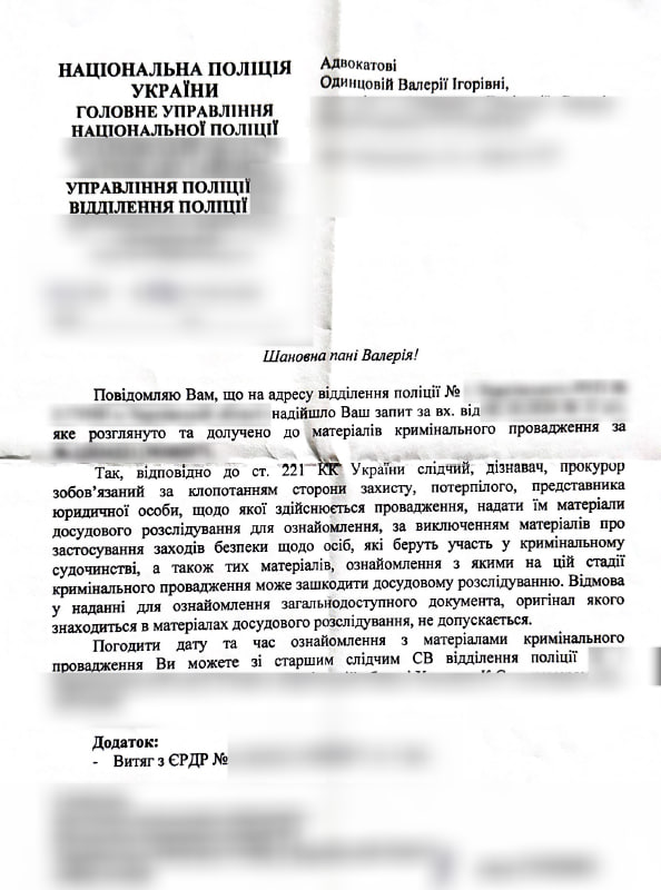- Встановлено хід розслідування: Національна поліція надала офіційну відповідь, підтвердивши реєстрацію справи в ЄРДР, та повідомила про хід досудового розслідування.