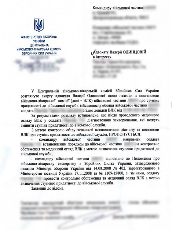 Не получив адекватного решения, мы пошли выше — в Центральную военно-врачебную комиссию ВСУ.